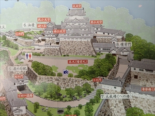 姫路城の変遷は鎌倉室町時代の赤松則村(のりむら)に遡り、彼が護良親王(もりよししんのう 後醍醐天皇の子)の挙兵命により京へ行く途中で築いた砦に由来します。その後、子の貞範(さだのり)が本格的な城を築きます。その後山名家に渡すも応仁の乱で赤松政則が奪い返し、その後の城を引き継いだ一族の小寺氏、そして家臣の黒田氏のあずかりとなった姫路城です。そして、戦国時代の軍師黒田官兵衛は1546年(天文15年)にここで誕生します。